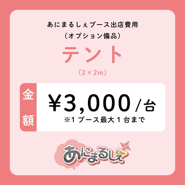 こちらは、あにまるしぇの出店に関わる商品です。 ・【雑貨販売(自社オリジナル加工品も可)】 ・【ワークショップ】 のブース出店費がこちらに該当します。